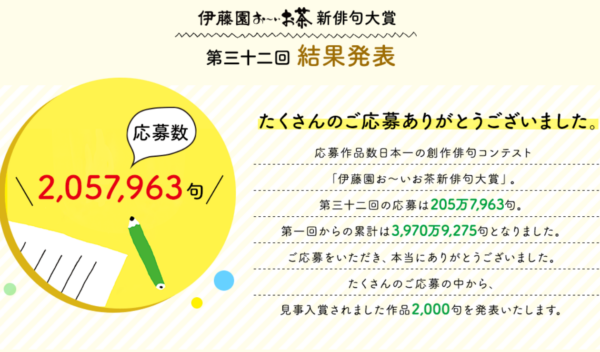 第三十二回 伊藤園お~いお茶 新俳句大賞入選