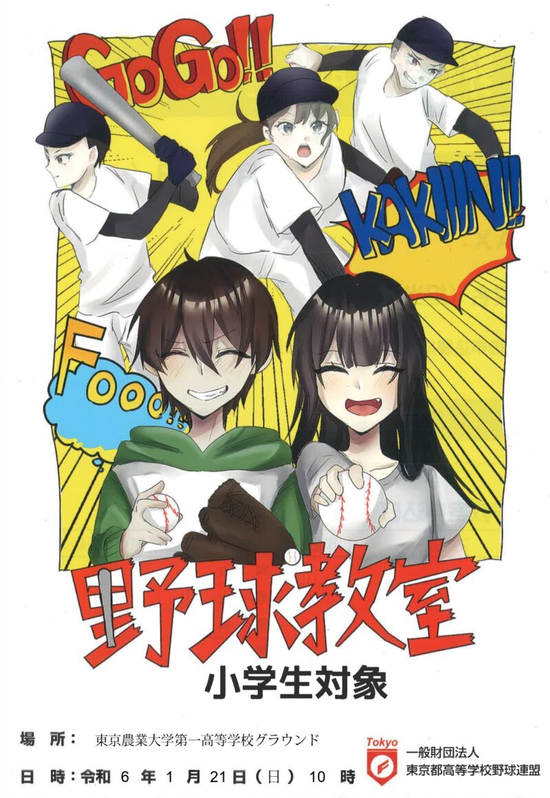 2024年1月21日(日)に、農大一高にて、小学中学年(3・4年)から小学校高学年(5・6年)を対象とした野球教室を開催します。