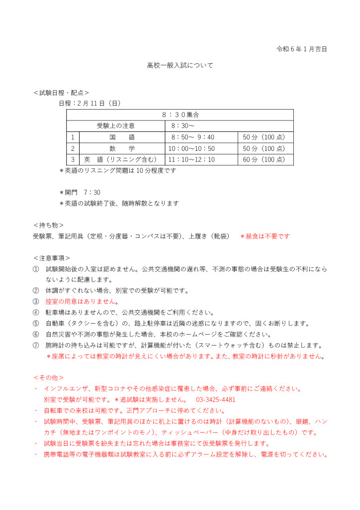 高校一般入試の募集要項について追加と訂正を下記に更新しました。