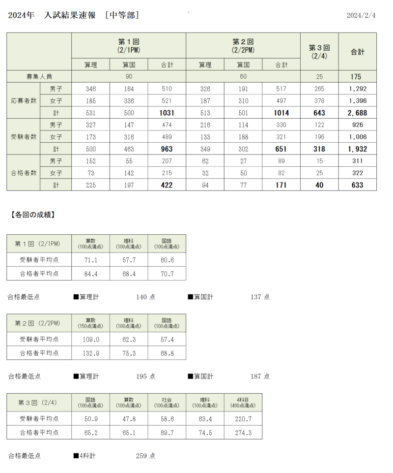 2024年中等部入試結果 印刷用はこちら(PDF)