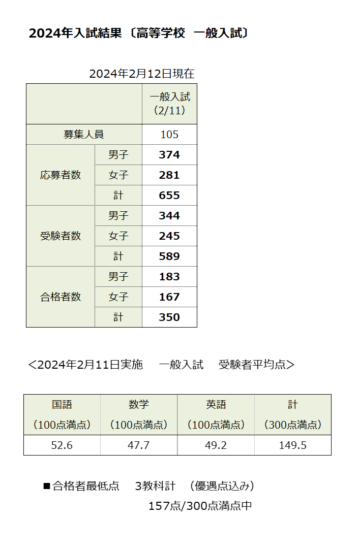 2024年高校一般入試結果 印刷用はこちら(PDF)