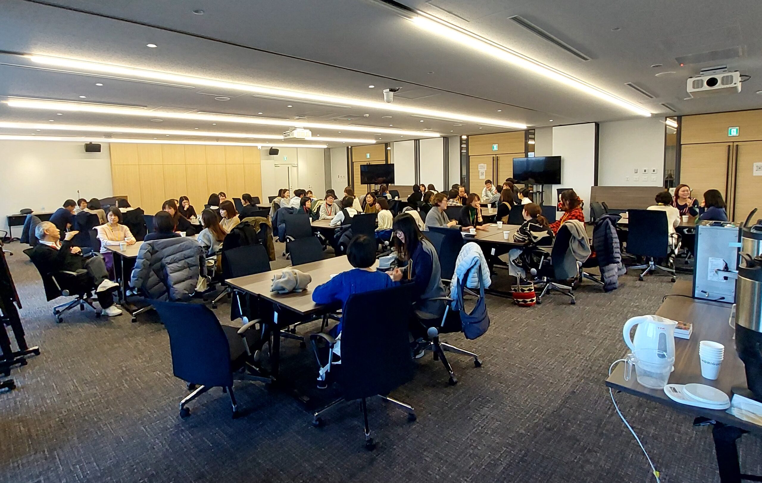 質問コーナーでは、コーヒーと牛乳の美味しい組み合わせ方から今後のコーヒー豆の栽培をよくするための方法など時間目一杯まで質問が途絶えることがなく有意義なお時間となりました。事後アンケートでは、「上質なコーヒーを感覚や数値で分析した説明が理論的でわかりやすかった」「実用的かつ興味深い内容でした」「堀口会長のお話がわかりやすかった」とのたくさんのお声を頂きました。講座内容もさることながら、長年好きなコーヒーに対する探究心を深掘りし続け、70歳で大学院博士号をとる堀口さんのバイタリティに感銘を受ける内容となりました。
