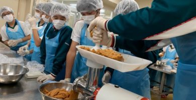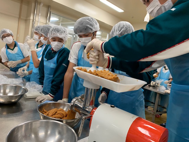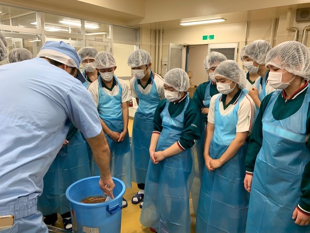 10月25日(金)に中等部3年生は農大の食品加工センターで味噌の袋詰め作業を行いました。
