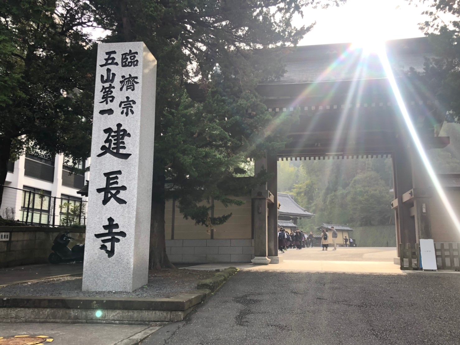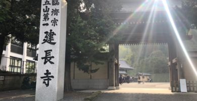 午前中は建長寺にて坐禅体験。お坊さまから、坐禅の作法、心の持ち方などを教えていただき、