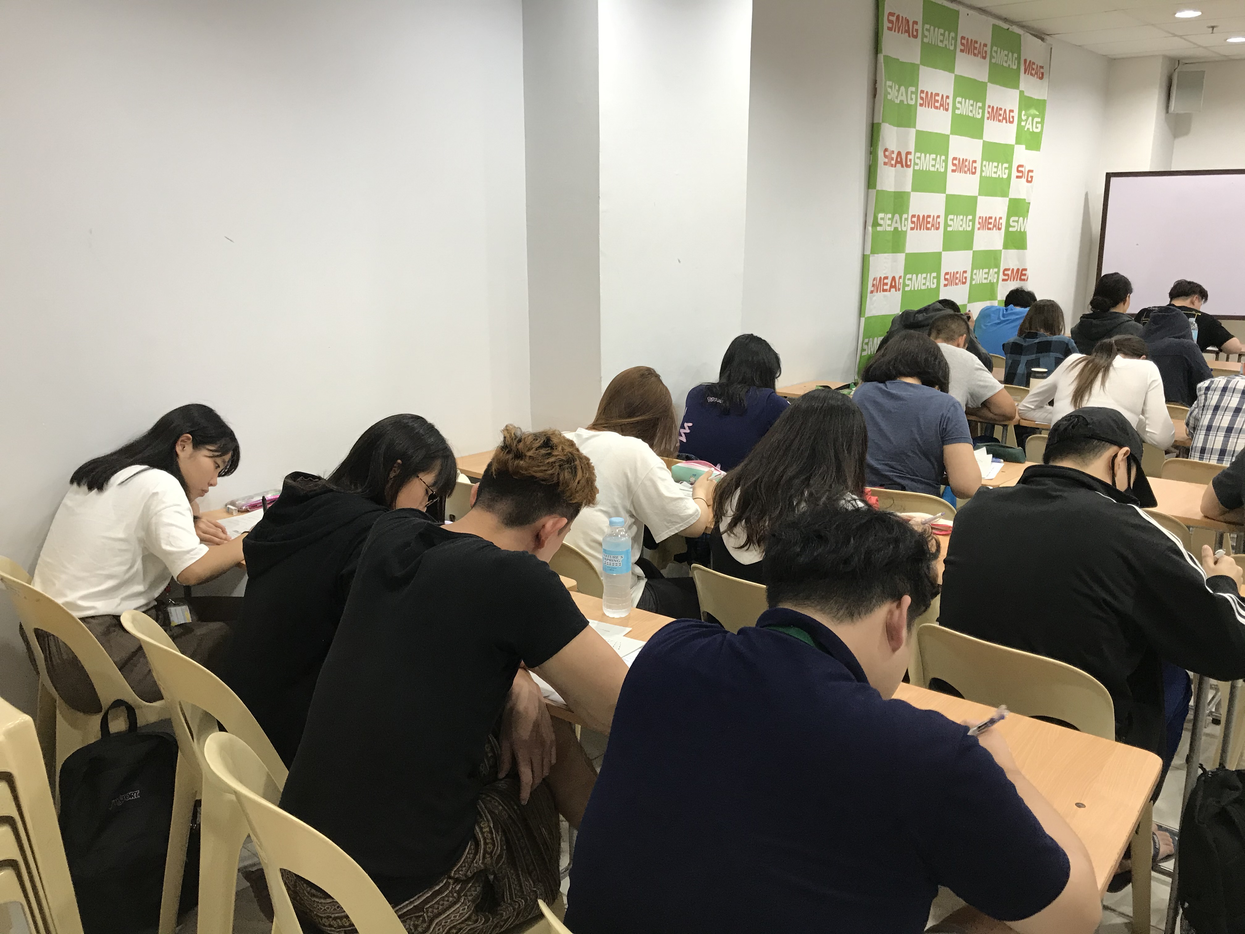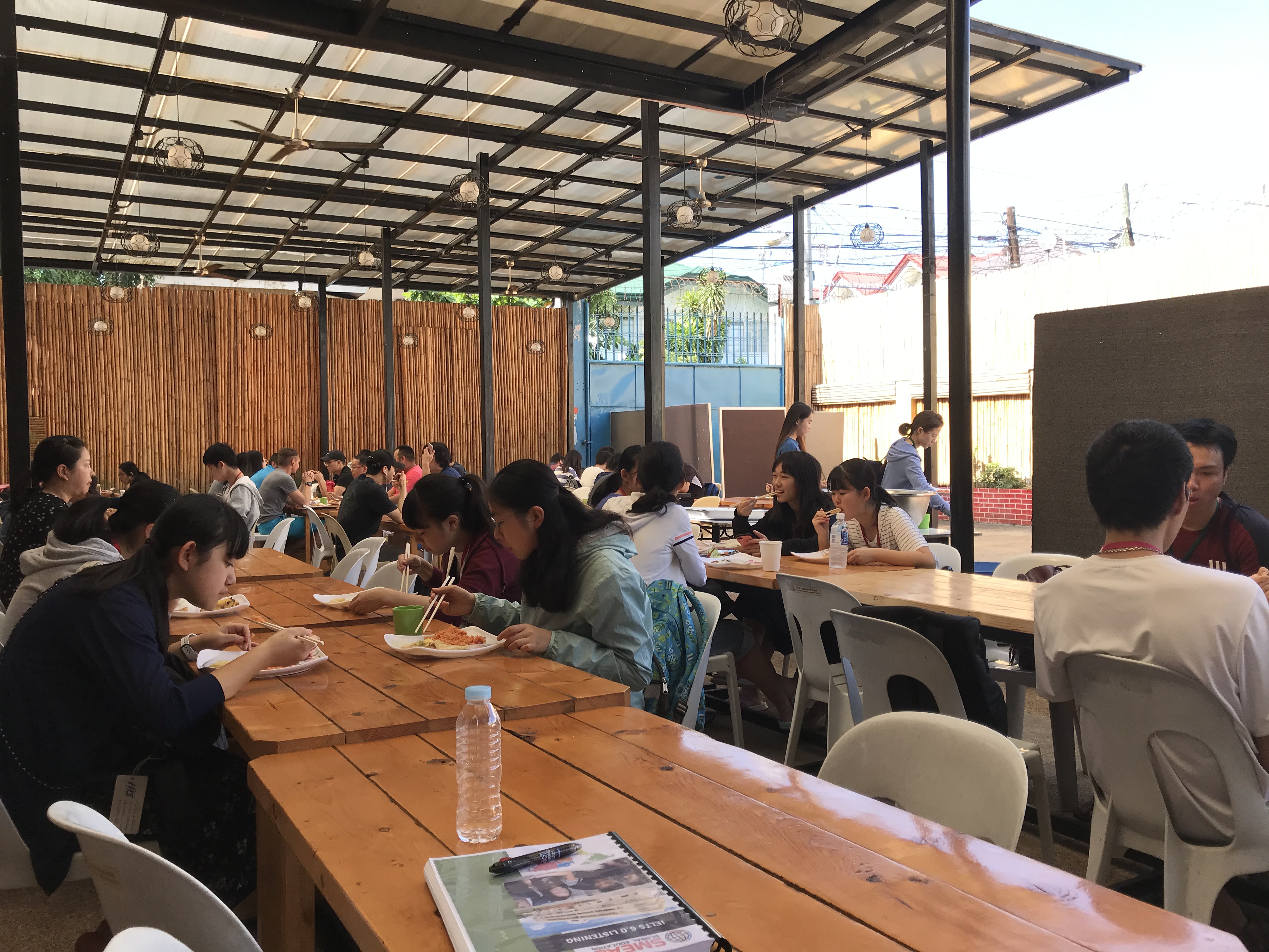 セブ島に来て5日目となりました。朝食時と夕食時には、熱帯特有のスコールが降りました。夕方のスコールは雷も伴っていて、とても激しい雨でしたが、ほんの30分程度で止んでしまいました。 生徒たちはこちらでの生活に少しずつ慣れてきて、一日を過ごすペースがわかってきたようです。 夕食後には、他国から来ている人たちと一緒に週間テスト(模擬テスト)を受験しました。