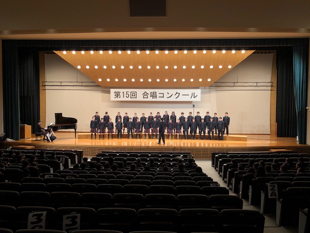 12月13日(金) 中等部 第15回合唱コンクールが大学の百周年記念講堂にて行われました。 各クラスがこの日に合わせて計画的に練習を重ねてきました。その成果を存分に発揮し,満足のいく合唱ができたようです。