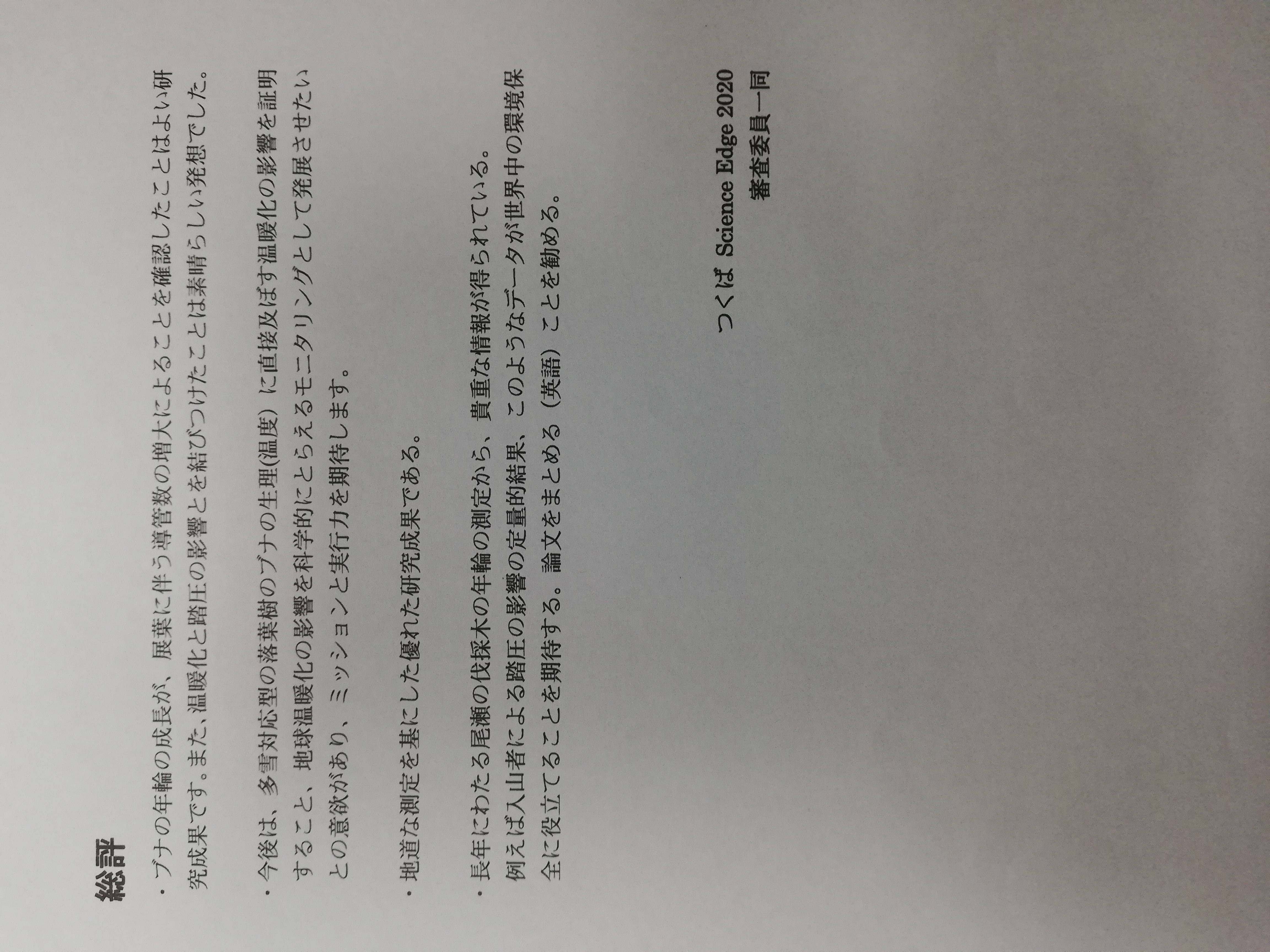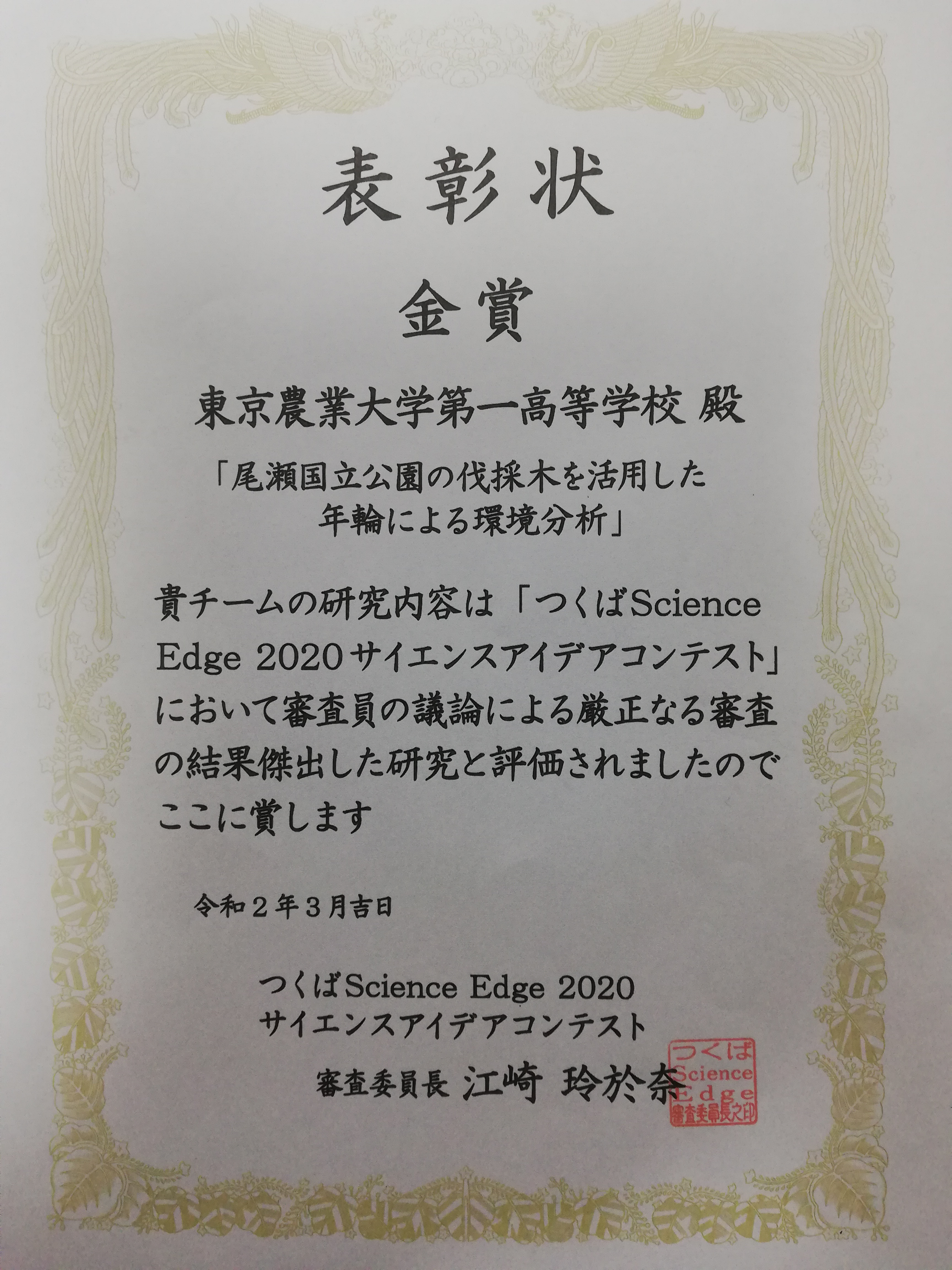 つくば Science Edge 2020 サイエンスアイディアコンテストにおいて、本校生物部の「尾瀬国立公園の伐採木を活用した年輪による環境分析」研究チームが金賞を受賞しました。