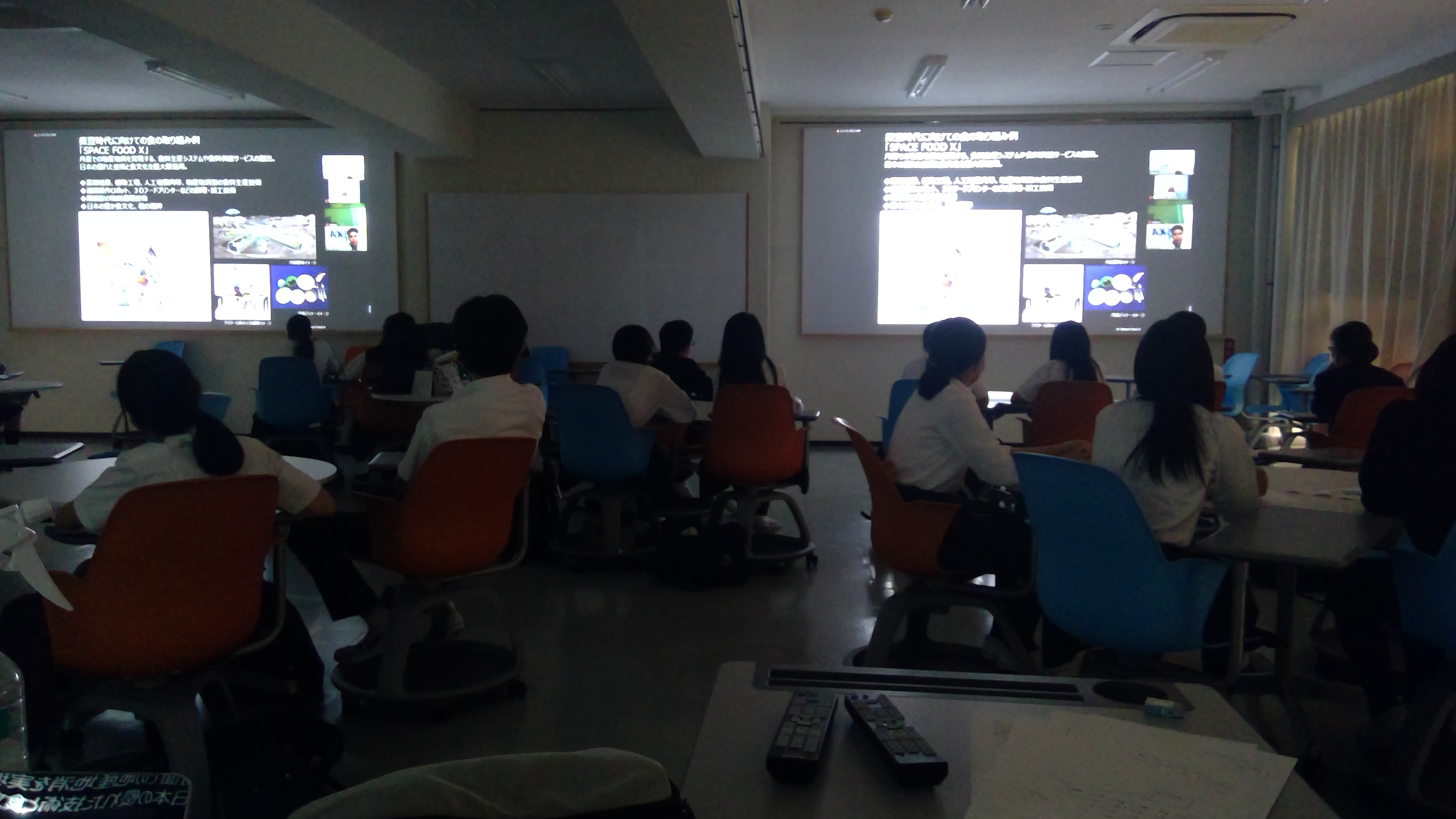第2回目のゼミは、各グループに「どのような経緯でテーマを決定し、今後の進め方」を発表してもらい、JAXA(古賀 様)からアドバイスを受けました。 これから、各グループが次回のゼミに向けて調べ学習をしていきます。 各グループのテーマは以下の通りです。 ・宇宙食(コンビニ弁当)・スペースデブリ・火星の移住 ・環境に優しいロケット・電磁カタバルトでロケットを飛ばす・新しい宇宙食の開発