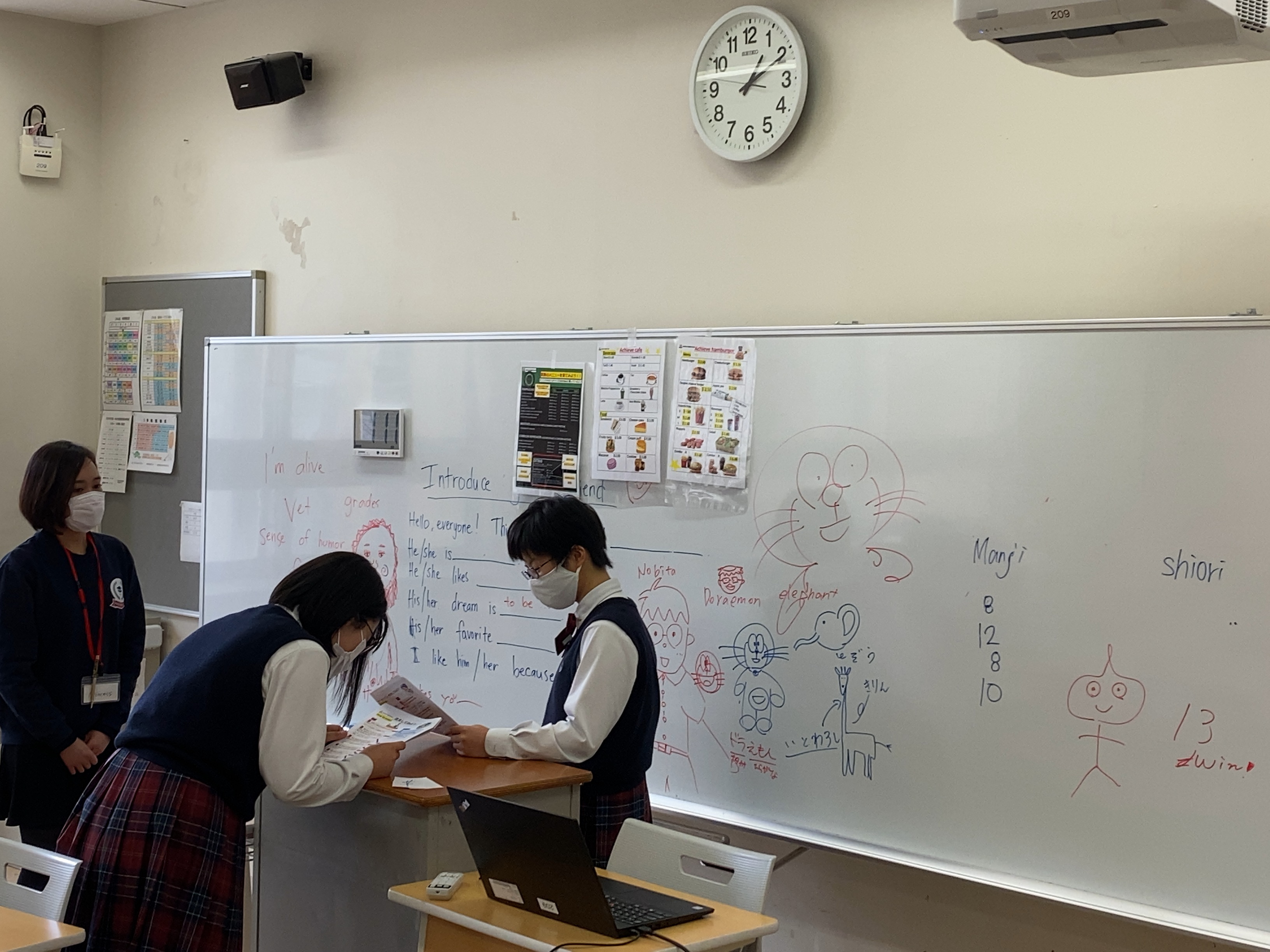 最初は英語で発言することに苦労していましたが、時間が経つにつれて楽しそうに話し合う場面も増えてきました。