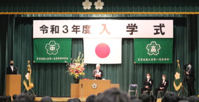 4月7日、令和3年度入学式を本校体育館アリーナで挙行しました。爽やかな晴天の下、午前10時より中等部新入生208名と午後2時より高校新入生327名が新たなスタートを切りました。