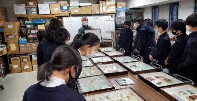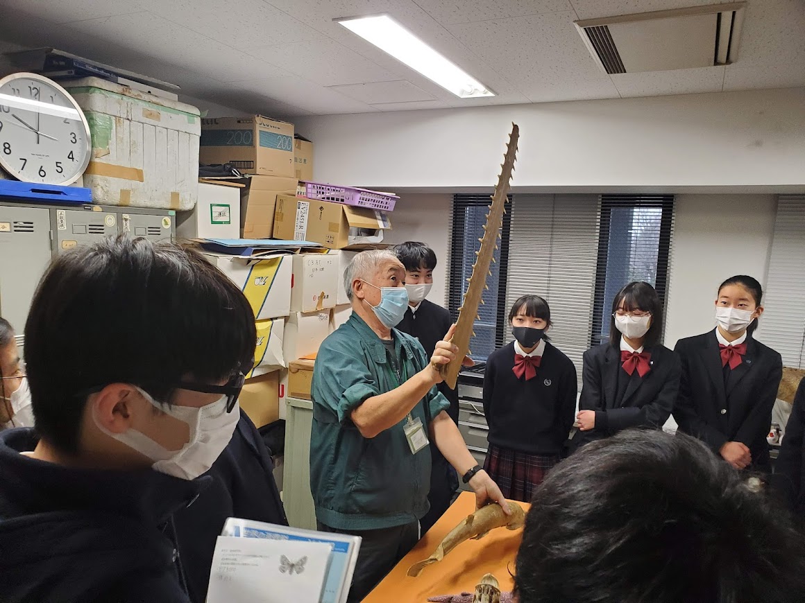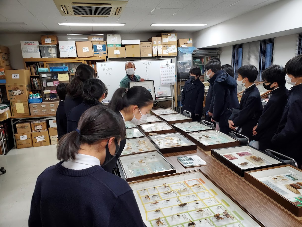 中学1年生は、12月14・15日に「進化生物学研究所」を見学に行きました。 一般の人が入ることのできない博物館のバックヤードを見学し、 生物の進化と大陸移動にかかわる生物たちを観察することができて、 生徒たちは目を輝かせていました。