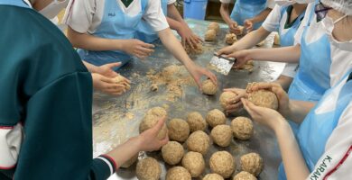 作業工程としては、蒸した大豆を潰し、米麹と塩を混ぜ合わせました。出来上がりは年末。美味しい味噌ができるか楽しみです。