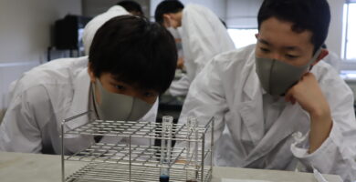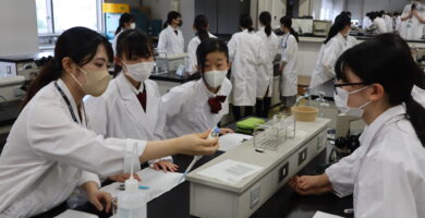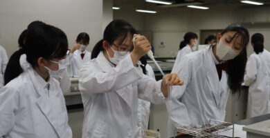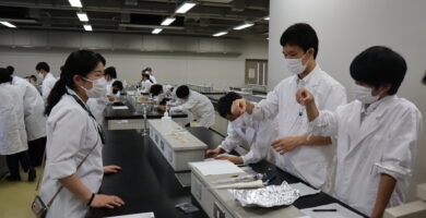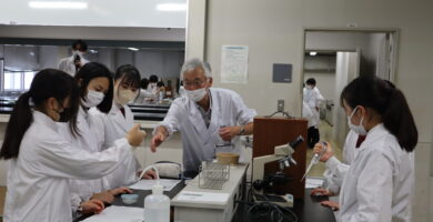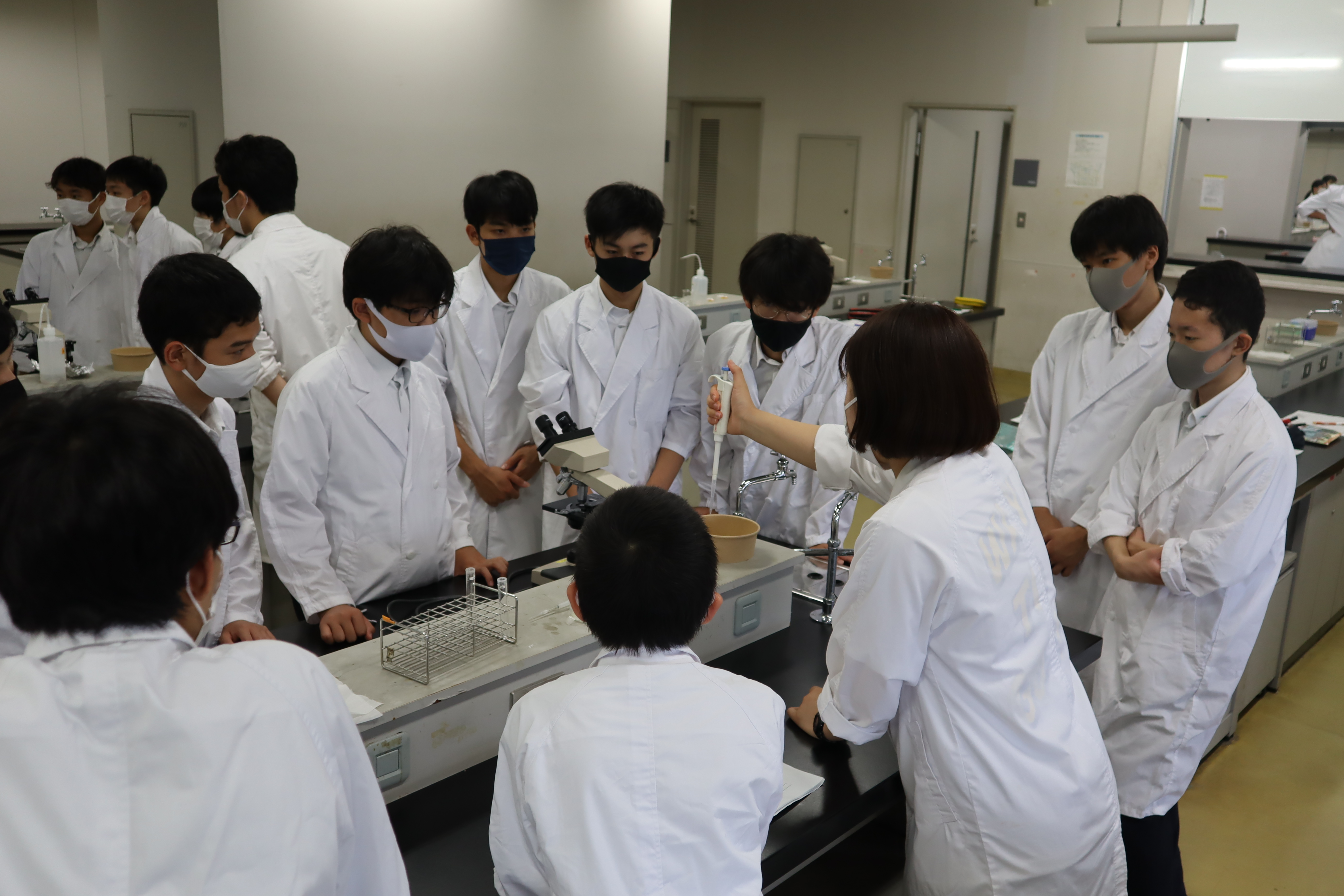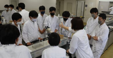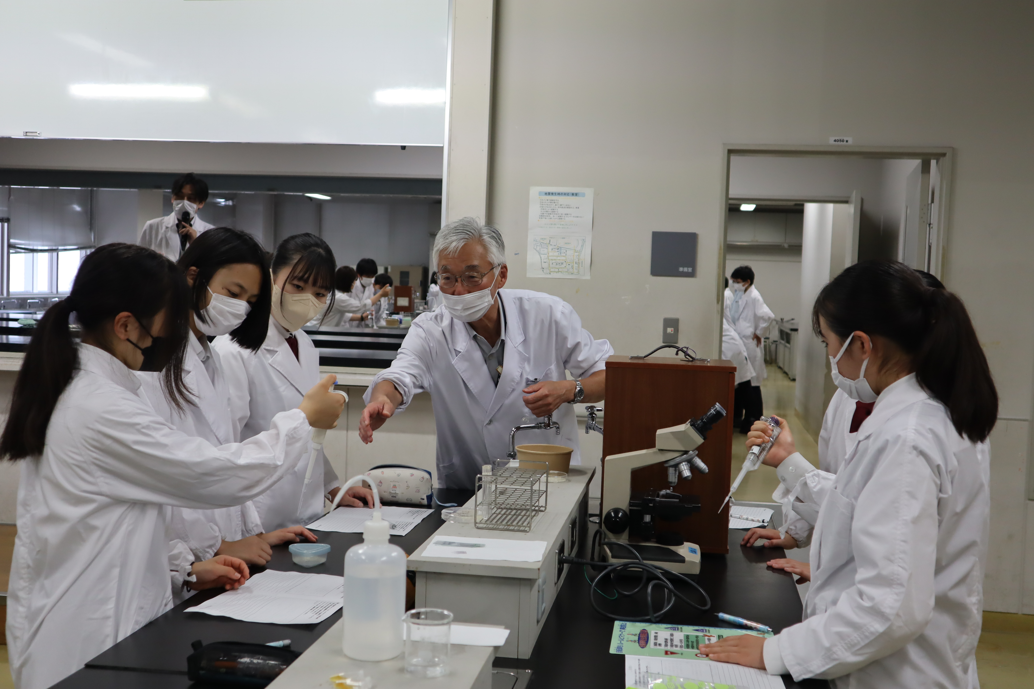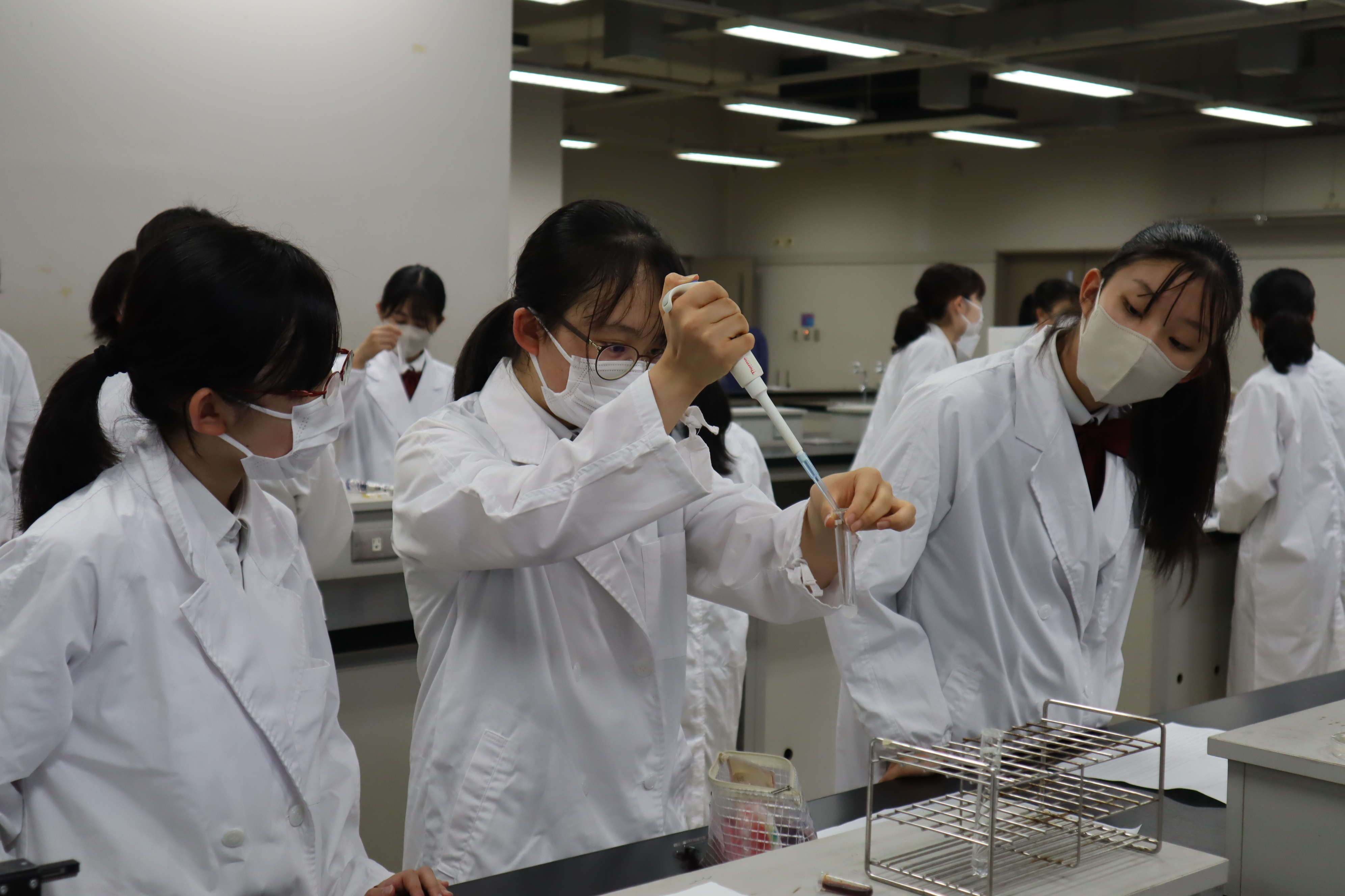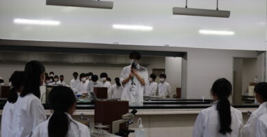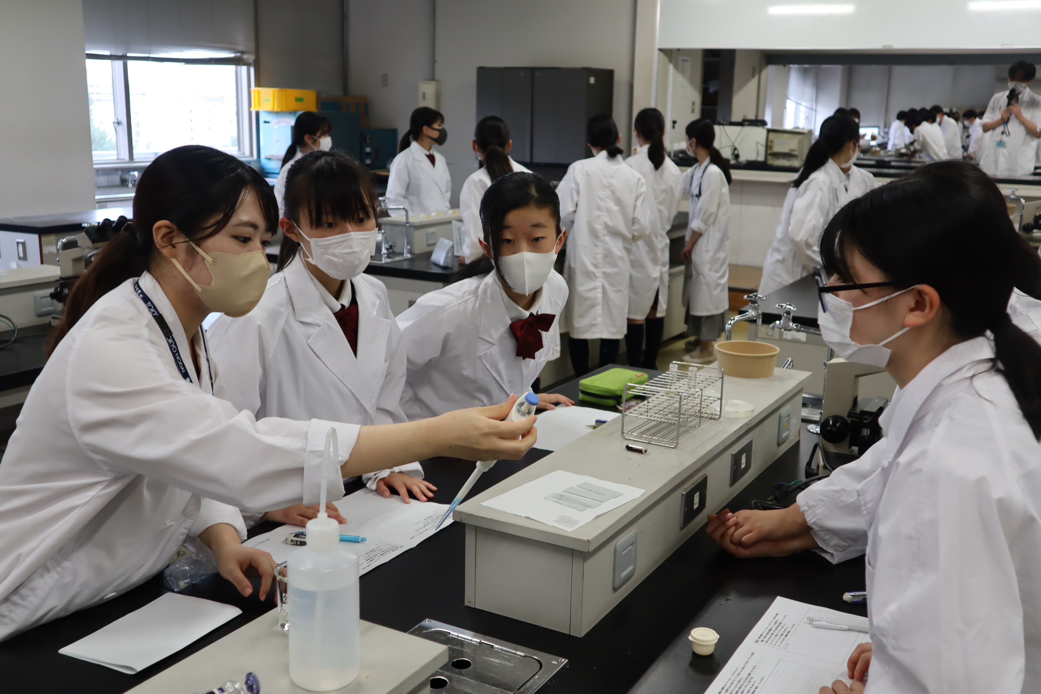 先生の講義を熱心に聴いて細かくメモを取ったり、実験する際大学生にお手伝いいただきながら興味深く観察をしていました。