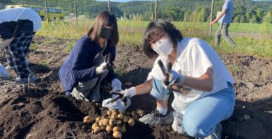 初日の7日(水)は、女満別空港から網走エリアに向かい、農場にてじゃがいもやとうもろこしの収穫、オホーツク流氷館にて-15℃の極寒体験、北方民族博物館にて北方地域に住む人々の生活の知恵や技術について学習しました。