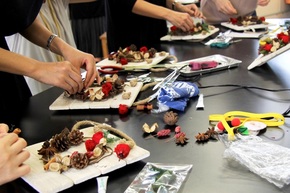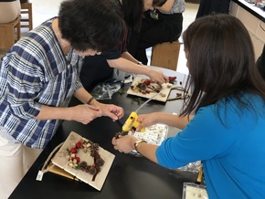 本講座の様子と講座委員が製作したものを桜花祭にて展示致します。また、桜花祭では、ミニコサージュ作りの体験コーナーを行う予定をしていますので、是非お越しください。