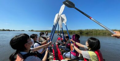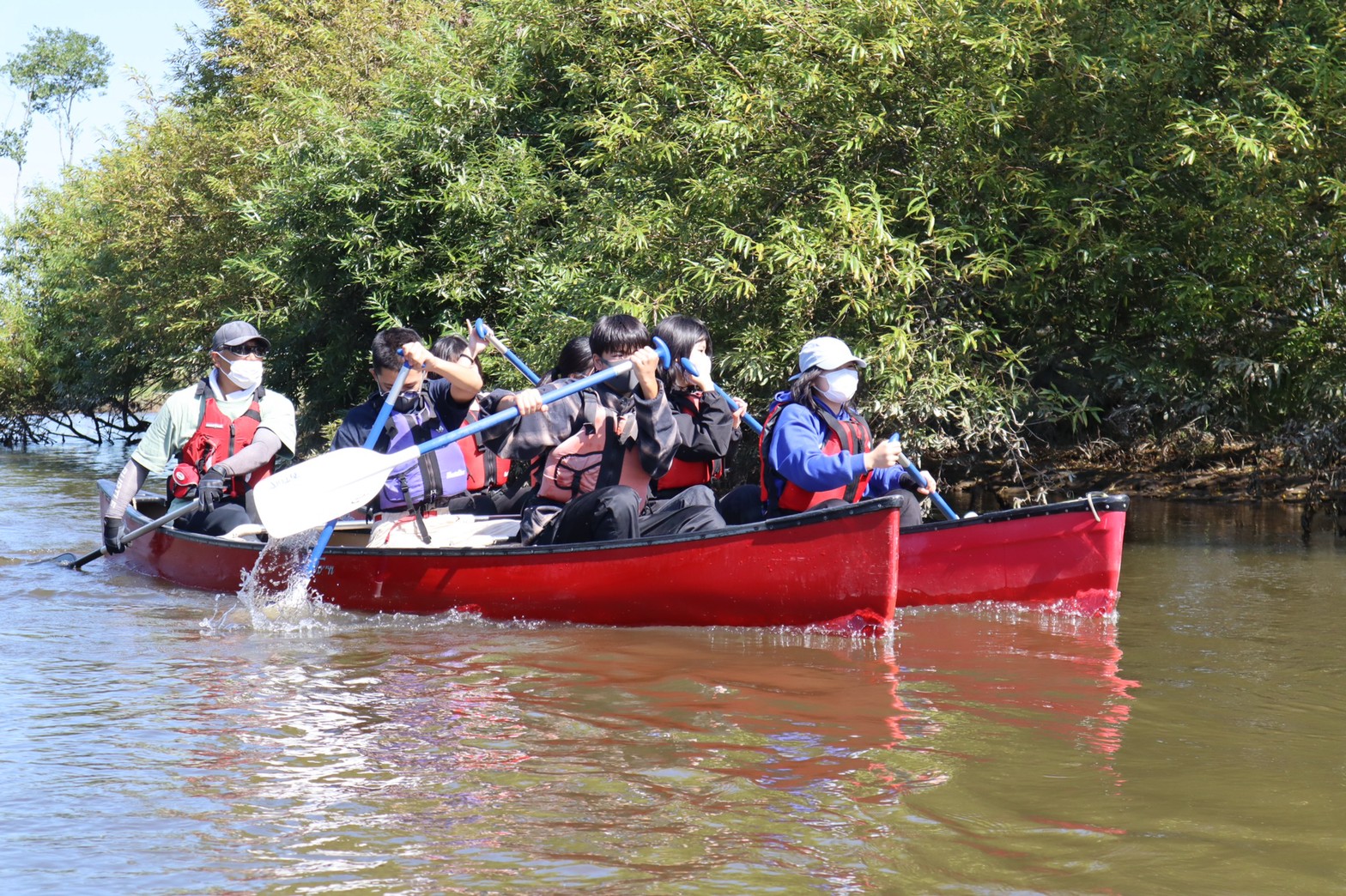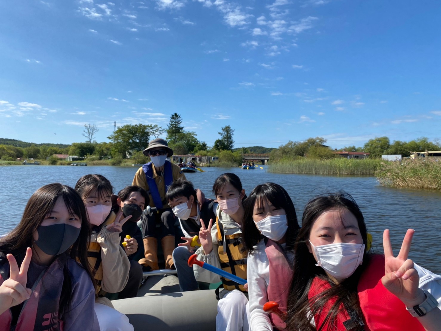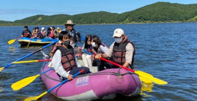 ドリフトボートやカヌーに乗船し、パドルを手に仲間と息を合わせて漕ぎ進めたり、ゆったりと塘路湖や釧路湿原の景観や野鳥を眺めたりして楽しみました。