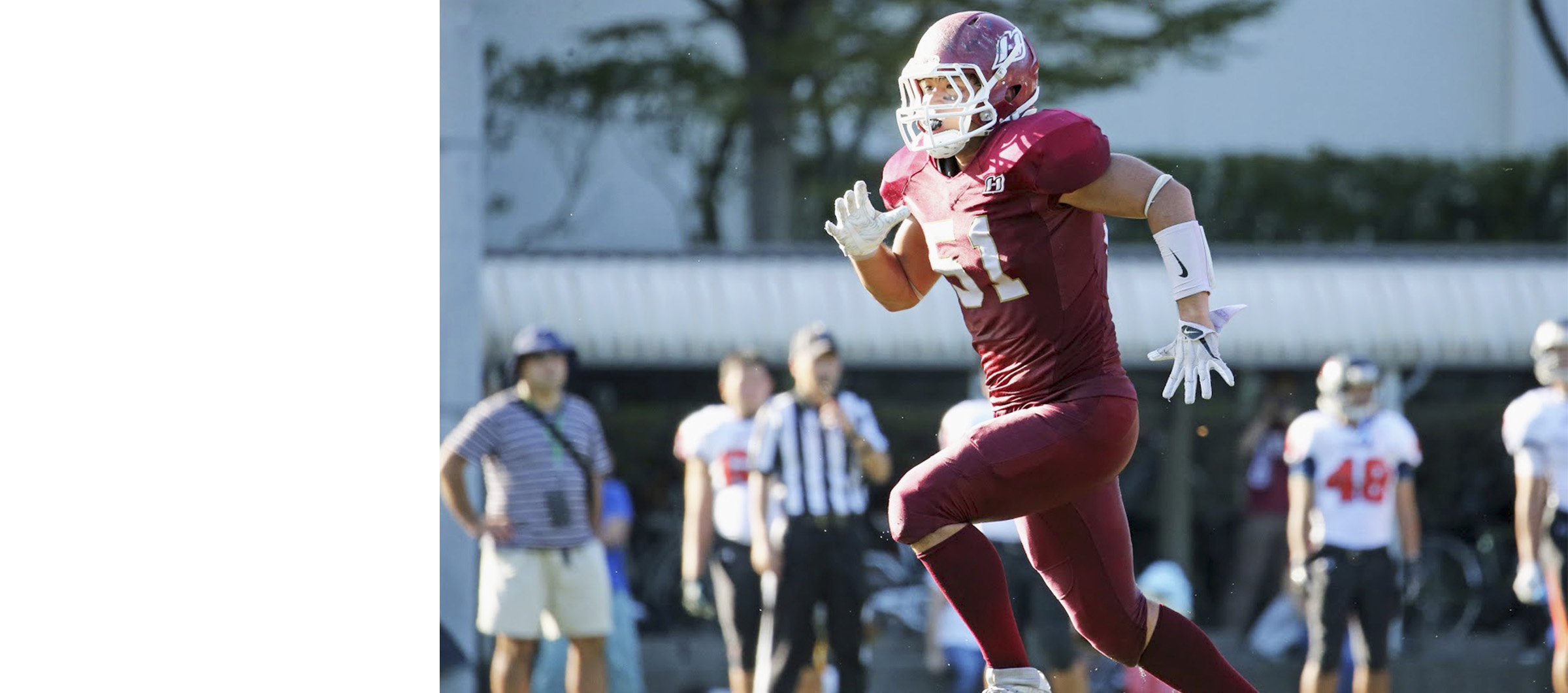多くの仲間と切磋琢磨し、自分自身大きく成長した高校時代。ここで出会った仲間は、今も変わらず一緒に遊んだりと、長い付き合い。嬉しかったのは、アメフトの試合に仲間がみんなで応援に来てくれたこと。とても力になりましたね。